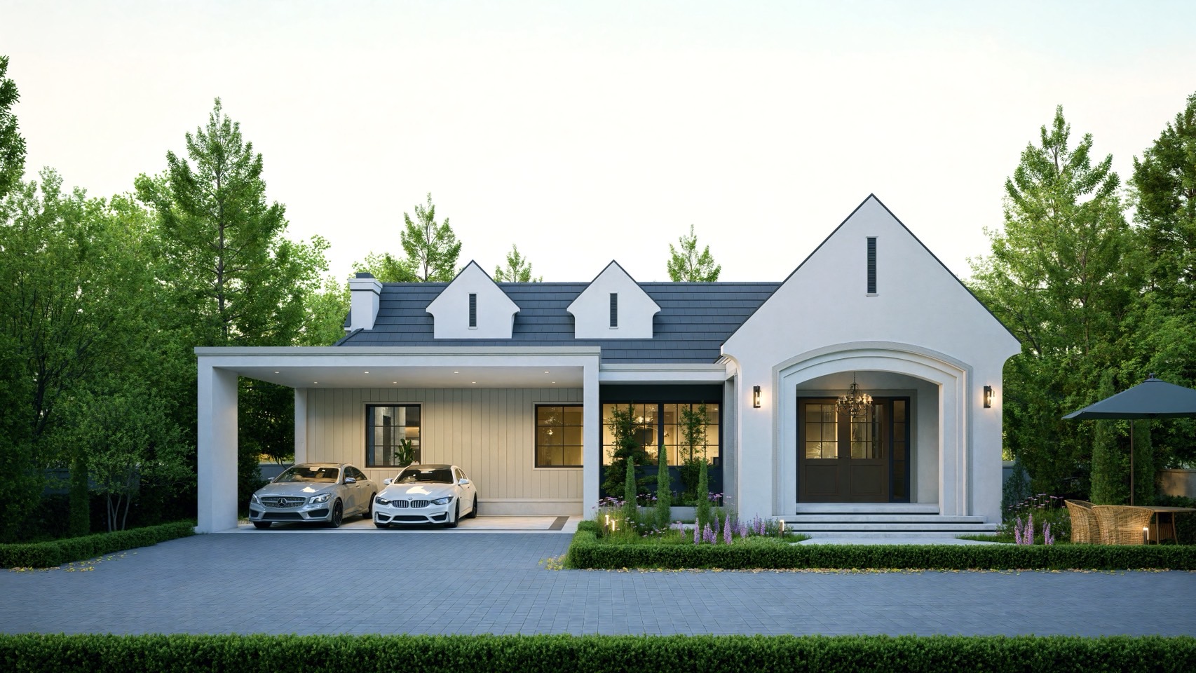 จุดเด่น: ห้องนั่งเล่นแบบ Double Volume สูงโปร่ง, สวนส่วนตัวด้านหลัง, ครัวไทยและครัวฝรั่งแยกโซน, ระบบ Smart Lighting & Home Automation เบื้องต้น